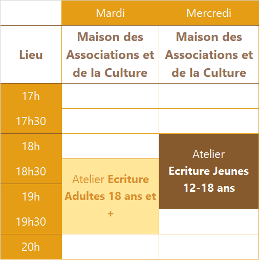 Ateliers d’Ecriture – Salle Léo Férré Maison des Associations et de la Culture